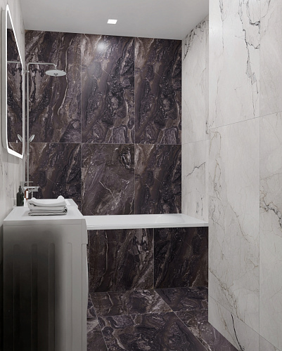 Неглазурованный керамогранит под мрамор, размер 60*120. В стиле Неоклассика. Поверхность полированная. Подходит для кухни, ванной комнаты, прихожей, жилых и коммерческих помещений.