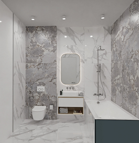 Неглазурованный керамогранит под мрамор, размер 60*120. В стиле Неоклассика. Поверхность полированная. Подходит для кухни, ванной комнаты, прихожей, жилых и коммерческих помещений.
