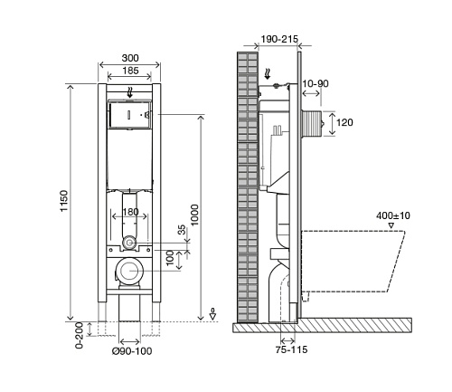 Совместима с моделями подвесных унитазов с расстоянием между креплениями 180 мм; Подходит для легких и несущих стен; Рама испытана нагрузкой 400 кг; Легкость и быстрота установки с помощью системы Fast Fit; Доступна опция с металлическими креплениями; Фановый отвод для слива, регулируемый по глубине; Регулируется по высоте от 0 до 200 мм; Ширина 300 мм; Возможна угловая установка. В комплекте: Крепежные элементы для унитаза; Крепежные элементы для рамы; Комплект соединительных патрубков для унитаза; Фановый отвод для слива и переходник ?90/110; G1/2” запорный клапан.