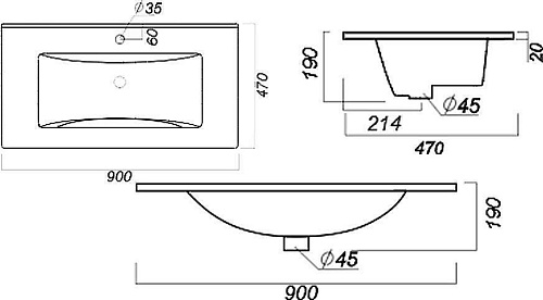 Умывальник Sanita Luxe QDR90SLWB01 Quadro встраиваемый сверху 90х47 см, белый (нов. арт. WB.FN/Quadro/90-C/GRY.M/S1)