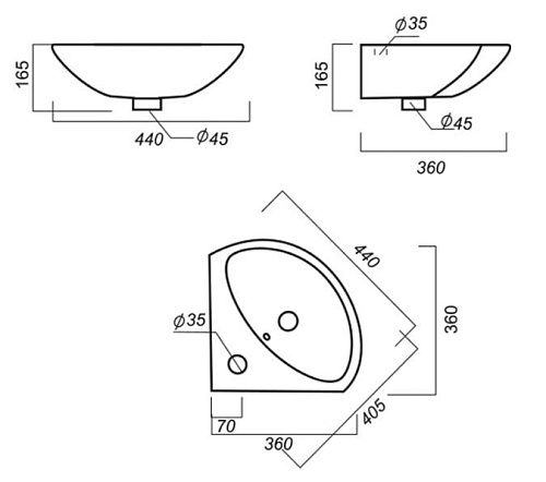 Умывальник Sanita VERSAWB01 Веер подвесной 44х41 см, белый (нов. арт. WB.FN/Veer/23-C/WHT.G/S1)