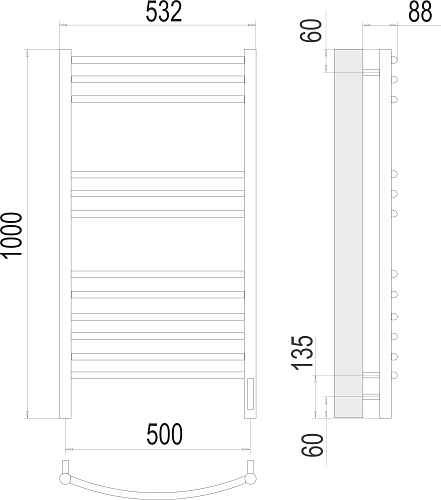 Полотенцесушитель электрический Terminus Классик П12 500х1000 электро (4670078527325)