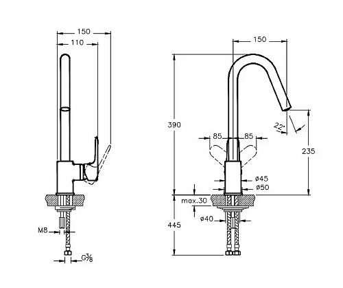 Высота излива 23,5