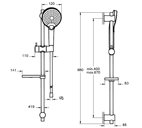Оснащение Душевая лейка, душевой шланг, держатель душевой лейки, мыльница, рельса, инструкция.