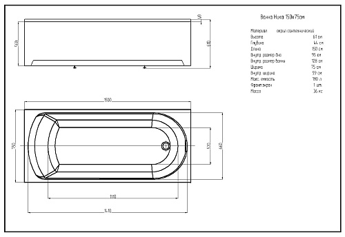 Акриловая ванна Aquatek Ника NIK150-0000001