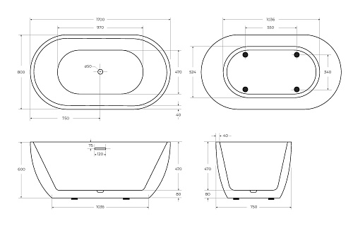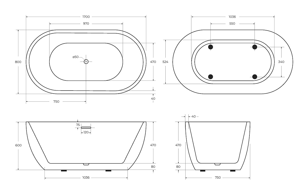 Монтаж: отдельностоящая Форма: овальнаяСтилистика дизайна: современнаяРазмер: 1700x800x600 ммМатериал: литьевой акрилЦвет: белыйСлив-перелив: входит в комплектациюРасположение перелива: по центруИсполнение фурнитуры: хромДополнительная информация: возможность комплектации напольным смесителем Гарантия: 10 лет с даты продажи