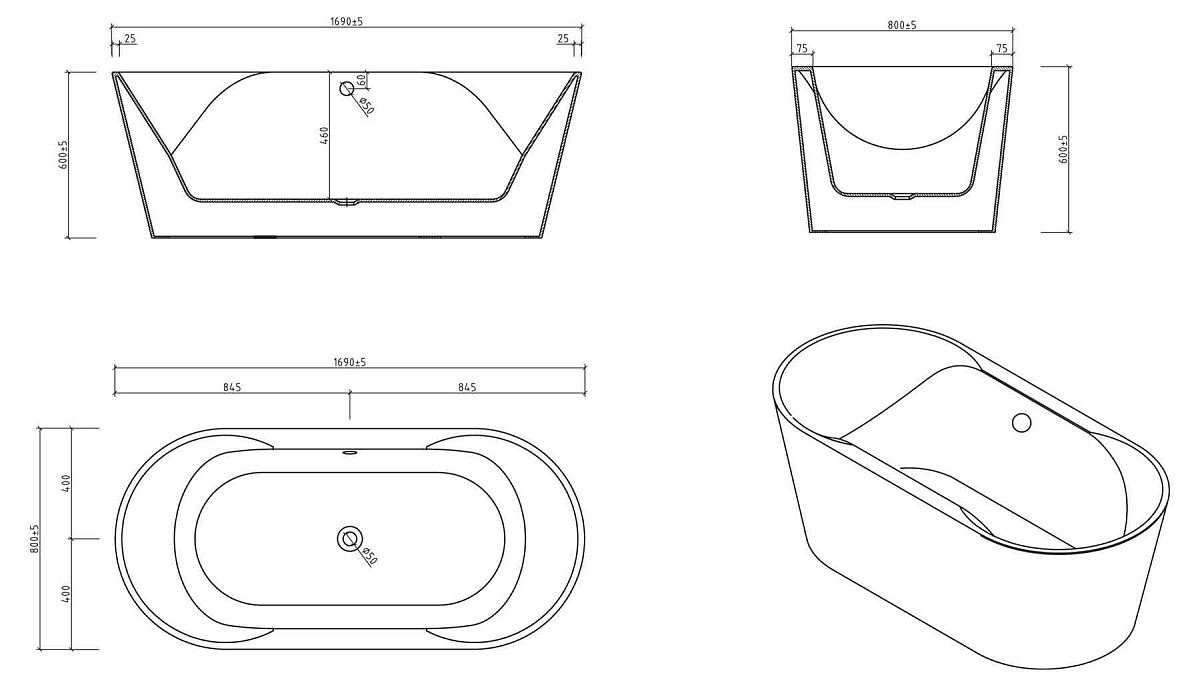 Акриловая ванна BelBagno BB200-1700-800-NERO купить по доступной цене