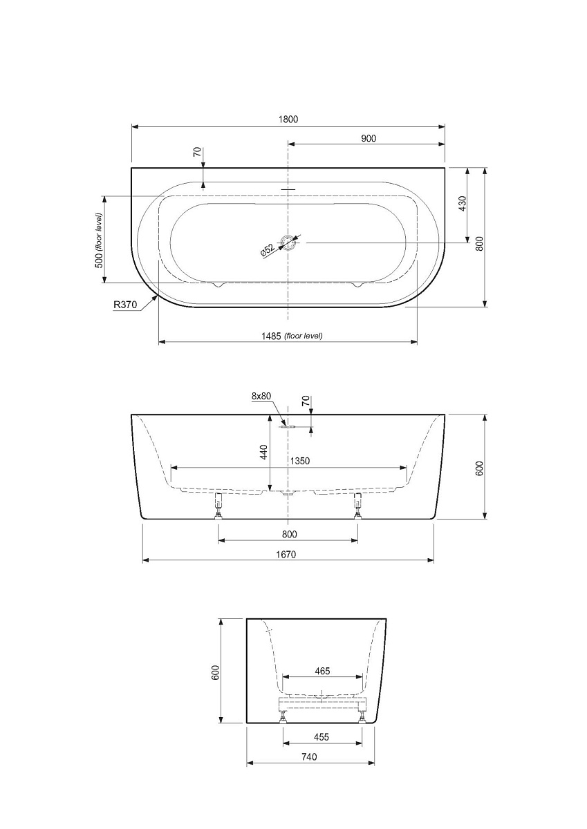 Акриловая ванна Cezares METAURO METAURO-INT-Wall-180-80-60
