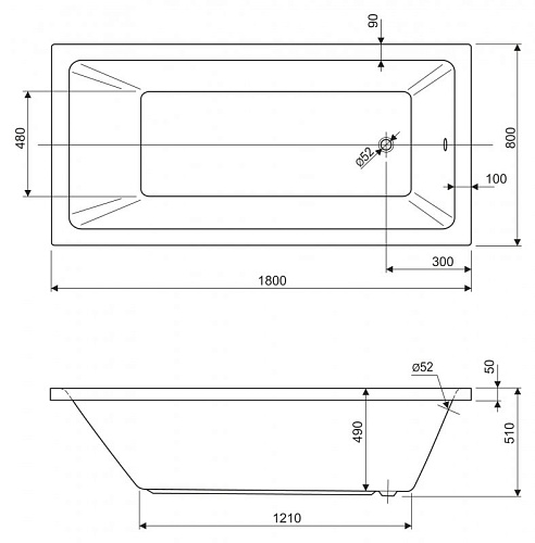 Акриловая ванна CEZARES PLANE SOLO-180-80-49