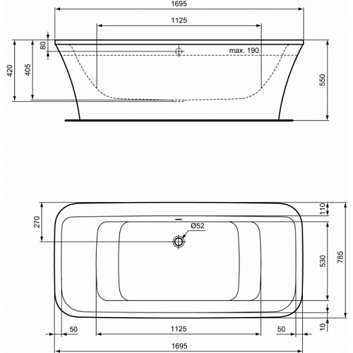 Ванна Ideal Standard E113801 Connect Air акриловая 170х80 см свободностоящая, Euro White (евробелый)