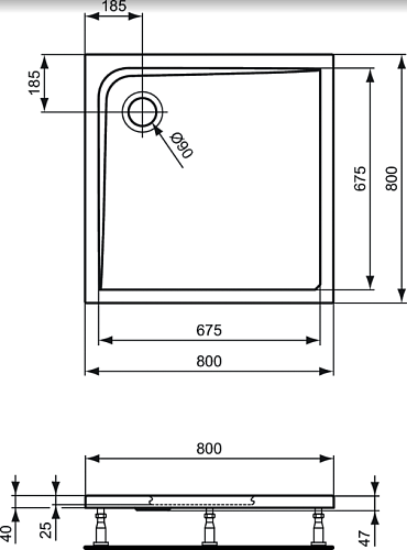 ULTRAFLAT Акриловый квадратный душевой поддон. Сифон, ножки и крепеж к стене заказываются дополнительно. Подходит для напольной и утопленной установки.