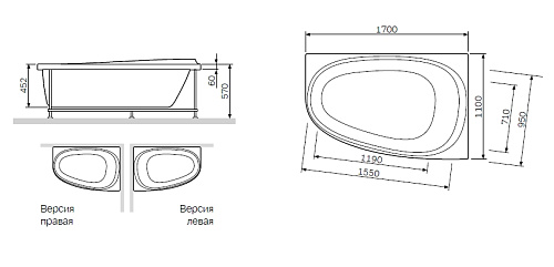 Каркас AM.PM W80A-170L110W-R Like, для ванны левосторонний, 170х110 см купить по доступной цене