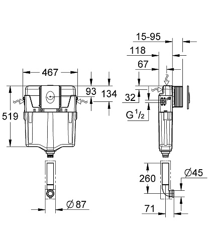 Тип товара Бачок встраиваемый, с клавишей смыва