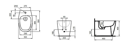 Биде Ideal Standard T509901 Dea напольное 37х55 см, Euro White (евробелый)