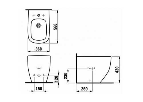 биде напольное Palomba 3280.1 , длина: 56см , ширина: 36см , высота: 43см , с отверстием под смеситель , без смесителя