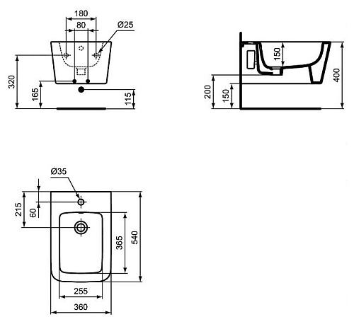 Биде Ideal Standard T368701 Blend Cube подвесное 36х54 см, с отверстием перелива, белое