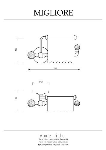 Бумагодержатель закрытый коллекции Amerida бренда Migliore — это один из необходимых аксессуаров для ванной комнаты. У бумагодержателя имеется крышка, которая помимо эстетической функции позволяет защитить бумагу от попадания брызг. Аксессуар украшен кристаллами Сваровски. Изделие выполнено из высококачественной латуни и имеет гальваническое покрытие золотом 24 карата. Внимание: золотое покрытие очень деликатное и для ухода рекомендуется использовать чистящее средство бренда Migliore для смесителей и аксессуаров с деликатными покрытиями бронза, золото, медь и протирать мягкой ветошью.