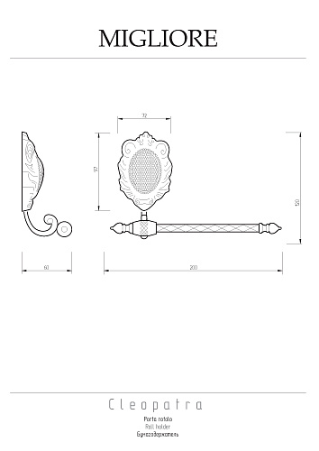 Бумагодержатель коллекции Cleopatra бренда Migliore — это один из необходимых аксессуаров для ванной комнаты. Розетка аксессуара имеет необычную форму, и удобный крепеж. Изделие выполнено из латуни и имеет высококачественное хромо-никелевое покрытие, которое при правильном уходе надолго сохранит свой блеск. Рекомендуется использовать чистящее средство бренда Migliore для смесителей и аксессуаров с хромированным покрытием.