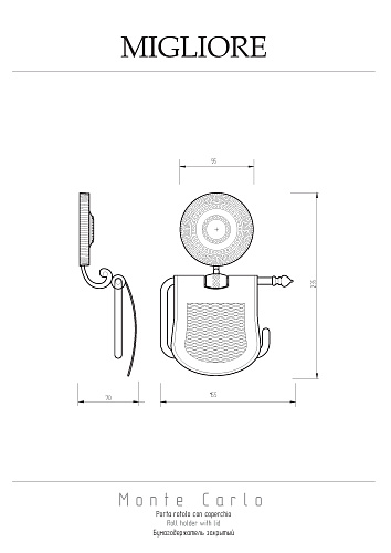 Бумагодержатель закрытый коллекции Montecarlo бренда Migliore — это один из необходимых аксессуаров для ванной комнаты. У бумагодержателя имеется крышка, которая помимо эстетической функции позволяет защитить бумагу от попадания брызг.
