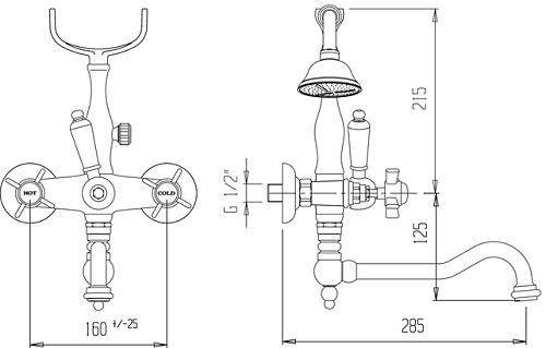Смеситель для ванной с поворотным изливом, керамические кран-буксы 180', металлические, стилизованные под крест рукоятки