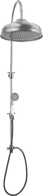 Душевой гарнитур: стационарный душ на штанге (душевая сетка 300 мм) с классической латунной лейкой, шланг 150 см, девиатор с переходником 1/2"х3/4"