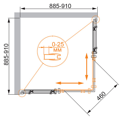 Душевой уголок, прямоугольный. Тип дверей: одна раздвижная дверь. Стекло: 8 мм, прозрачное. Исполнение: хром. Поддон: тип АН или барьер тип В. Поддон и барьер приобретаются отдельно. Особенности: * белый магнитный уплотнитель дверей; * уникальный дизайн роликовых механизмов; * увеличенная высота.