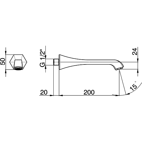 Излив Cisal CE00024021 Cherie настенный 200 мм для ванны, цвет хром