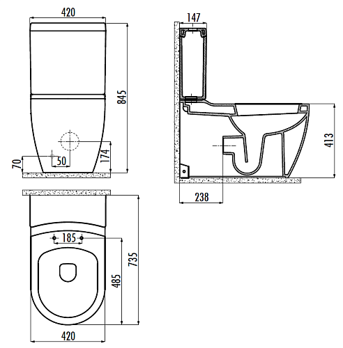 В сравнении с обычными унитазами, модель Grande имеет более широкую конструкцию на 6 см. Благодаря этому люди с индивидуальными особенностями могут оценить комфорт этого изделия по заслугам. Стильный дизайн унитаза вопреки большим размерам добавляет элегантность в дизайн ванной комнаты. Унитаз шире, чем обычные унитазы. Предназначен для "больших" людей. Крепления унитаза к полу в комплекте.