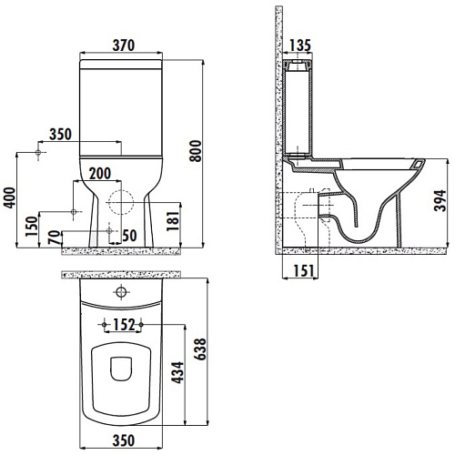 Оснащение Крепления к полу, шланг для подключения механизма смыва (3/8" - 3/8"), труба для подключения унитаза к канализации, боковые заглушки.