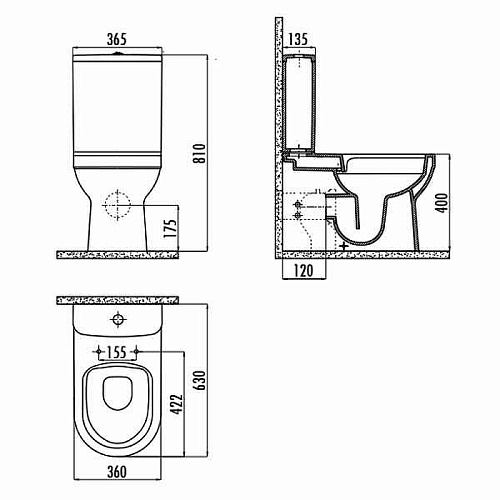 Чаша унитаза-компакт Creavit LT361-11CB00E-0000 Letoon напольный 36х63 см, без бачка и сиденья, белый