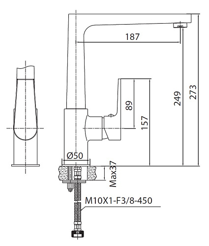 Высота излива 24,9