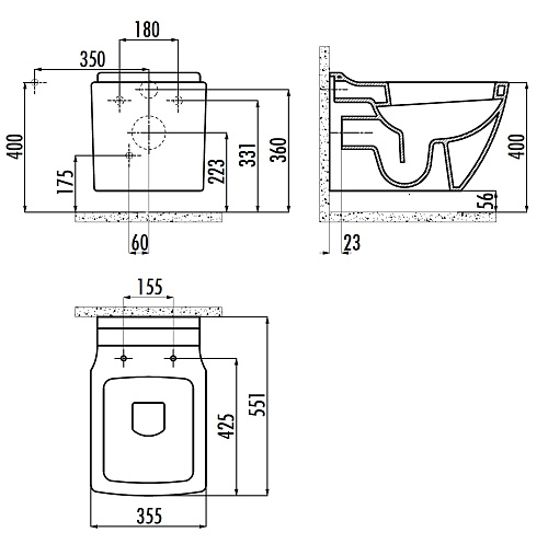 Чаша унитаза-биде Creavit TP324-00CB00E-0000 Trend подвесной 35.5х55 см, без сиденья, белый