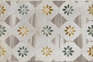 Декоративный керамический элемент для ванной комнаты и кухонного фартука. Глянцевая поверхность, с абстрактным узором в стиле пэчворк. Формат плитки 12х18 см.