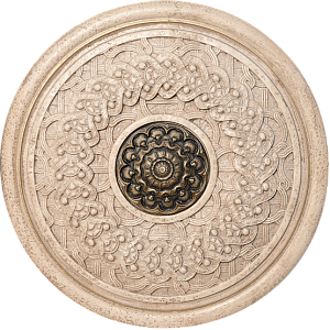 Декоративный керамический элемент (розетка) для ванной комнаты. Матовая поверхность, формат розетки 18х18 см. Текстура под камень с рельефным орнаментом. В античном стиле.
