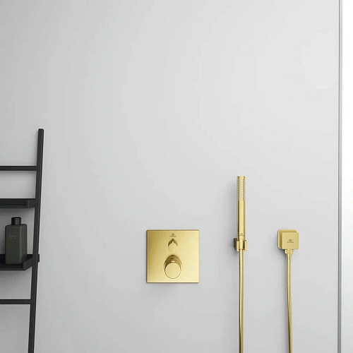 IDEALRAIN Фиксированный держатель для душевой лейки, кубический дизайн, металлический с пластиковым вкладышем. Цветное покрытие - технология PVD