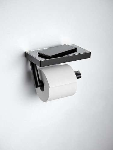 Держатель Keuco 12873379000 Reva для туалетной бумаги, с полкой, черный матовый