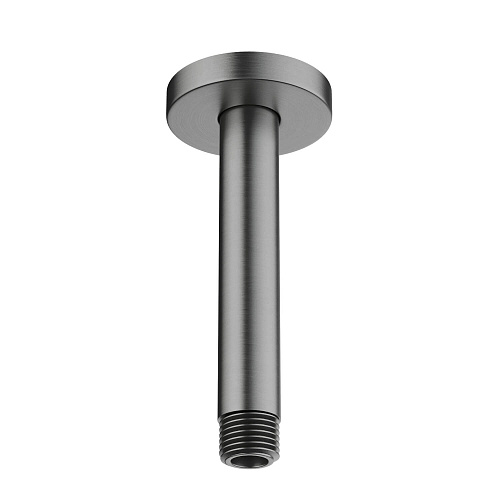 прочная конструкция из нерж.; устанавливается на потолок; 150 мм длинной; соединительная резьба 1/2"; в комплекте держатель с креплением; совместим с большинством душей; простота в установке