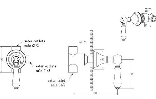 Дивертер встраиваемый Латунь Boheme IMPERIALE CRYSTAL 623-SW