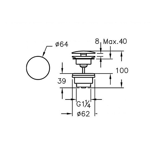 Донный клапан Vitra A45148EXP без перелива, Chrome (хром)