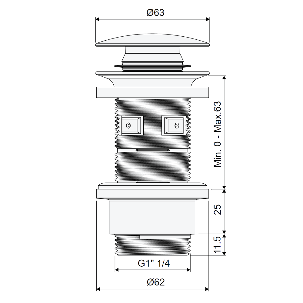 - универсальный донный клапан; - подходит для умывальников с переливом и без; - подходит для биде; - функция очистки сверху; - материал: латунь.