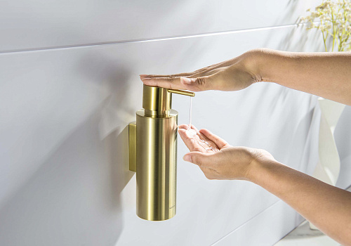Головка дозатора из латуни Емкость 250мл из нерж. Держатель из латуни Упаковано в белую коробку Размеры: 60X100X202мм