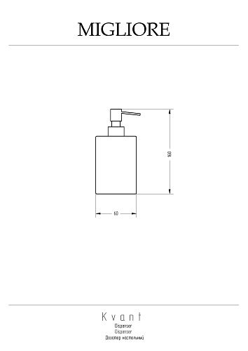 Дозатор настольный серии Kvant брэнда Migliore — это незаменимый аксессуар в ванной комнате. Материал – высококачественная латунь, покрытие хром. Для ухода рекомендуется использовать чистящее средство Migliore для смесителей и аксессуаров с хромированным покрытием.