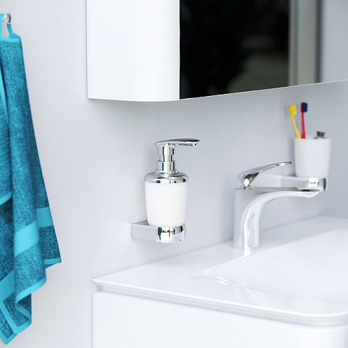 Стеклянный диспенсер AM.PM A3036900 Sensation, для жидкого мыла с настенным держателем, хром