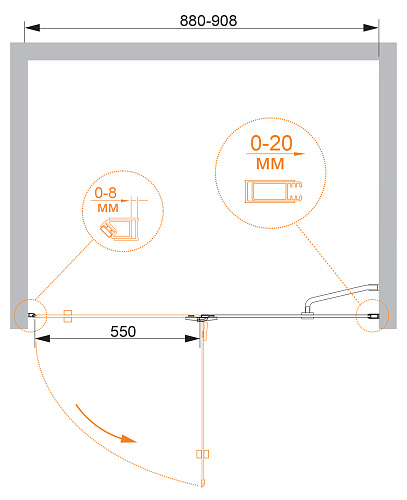 Душевая дверь CEZARES BERGAMO-W-B-12-90-C-Cr-R