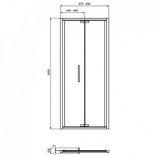 Душевая дверь Ideal Standard T4851EO i.life реверсивная 90х200 см, складная, Bright Silver блестящий серебристый)