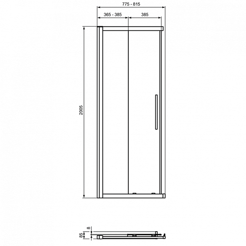 I.LIFE Square/Rectangular Реверсивная панель-дверь 80 см для комплектации квадратного/прямоугольного ограждения. Для полного комплекта необходима вторая дверь. Высота 200 см, безопасное прозрачное стекло 8 мм, антиизвестковое покрытие Ideal Clean, алюминиевый профиль Bright silver (толщина 1,2 мм), стальная ручка 300 мм, двойные верхние ролики, система быстрого отсоединения снизу, регулировка профиля до 20 мм, дополнительный профиль 25 мм в комплекте, скрытые винты, прозрачные уплотнители. Может комбинироваться с любым поддоном соответствующего размера, а также может устанавливаться без поддона на плиточный пол. Возможно комбинировать с фиксированной боковой панелью L (только в качестве третьей стороны ограждения).