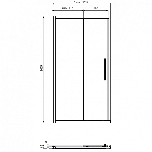 Душевая дверь Ideal Standard T4858EO i.life реверсивная 110х200 см, Bright Silver блестящий серебристый)