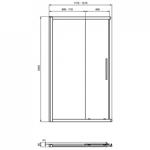 Душевая дверь Ideal Standard T4859EO i.life реверсивная 120х200 см, Bright Silver блестящий серебристый)