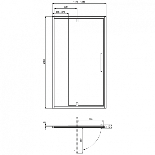 Душевая дверь Ideal Standard T4939EO i.life реверсивная 120х200 см, распашная, Bright Silver блестящий серебристый)