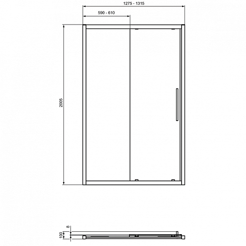 Душевая дверь Ideal Standard T4947EO i.life реверсивная 130х200 см, раздвижная, Bright Silver блестящий серебристый)